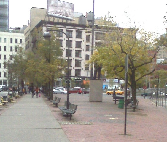 But if trees are to make a better environment for urban people, urban people must also create a viable environment for trees. That’s why fifteen people showed up in Duarte Park in downtown Manhattan on a cool October noon to practice what they’d learned in a two-hour “Tree Stewardship Workshop” sponsored by the City to rustle up more volunteers to care for its street trees. Except for its dozen-odd struggling plane trees, Duarte Park is a barren brick-paved triangle at the traffic-heavy start of Avenue of the Americas.